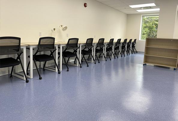 在美观方面,jc710公海赌船同质透心地板为St.John's Academy的教室增添了独特魅力。学校巧妙选用亮丽蓝色和米白色的jc710公海赌船地板,蓝色如同窗外的湖水,纯净清澈,有助于激发学生的灵感和想象力;米白色则如象牙般晶莹整洁,让学生心态平和宁静。两种颜色搭配,让教室充满活泼的青春气息,构建出令人向往、充满探索欲的教育空间,让孩子们更愿意沉浸在学习中。